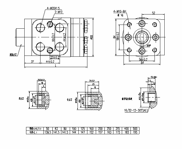 020低扭矩與025超低扭矩系列 020、025系列轉(zhuǎn)向器在010系列的基礎(chǔ)進 一步優(yōu)化設(shè)計,主要用于叉車和船舶舵機. 特點 •低液壓噪聲 •無終點滑移 •鑄造內(nèi)通道設(shè)計,壓力損失小 •基本類型:開芯 主要性能參數(shù) *大入口壓力……………16MPa *大連續(xù)背壓……………2.1MPa 轉(zhuǎn)向力矩 1.低扭矩型……1.8-2.5Nm 2.超低扭矩型….1.1-1.8Nm *高系統(tǒng)溫度……………93° 推薦油液清潔度…………ISO 18/13 020&025系列外形聯(lián)接尺寸